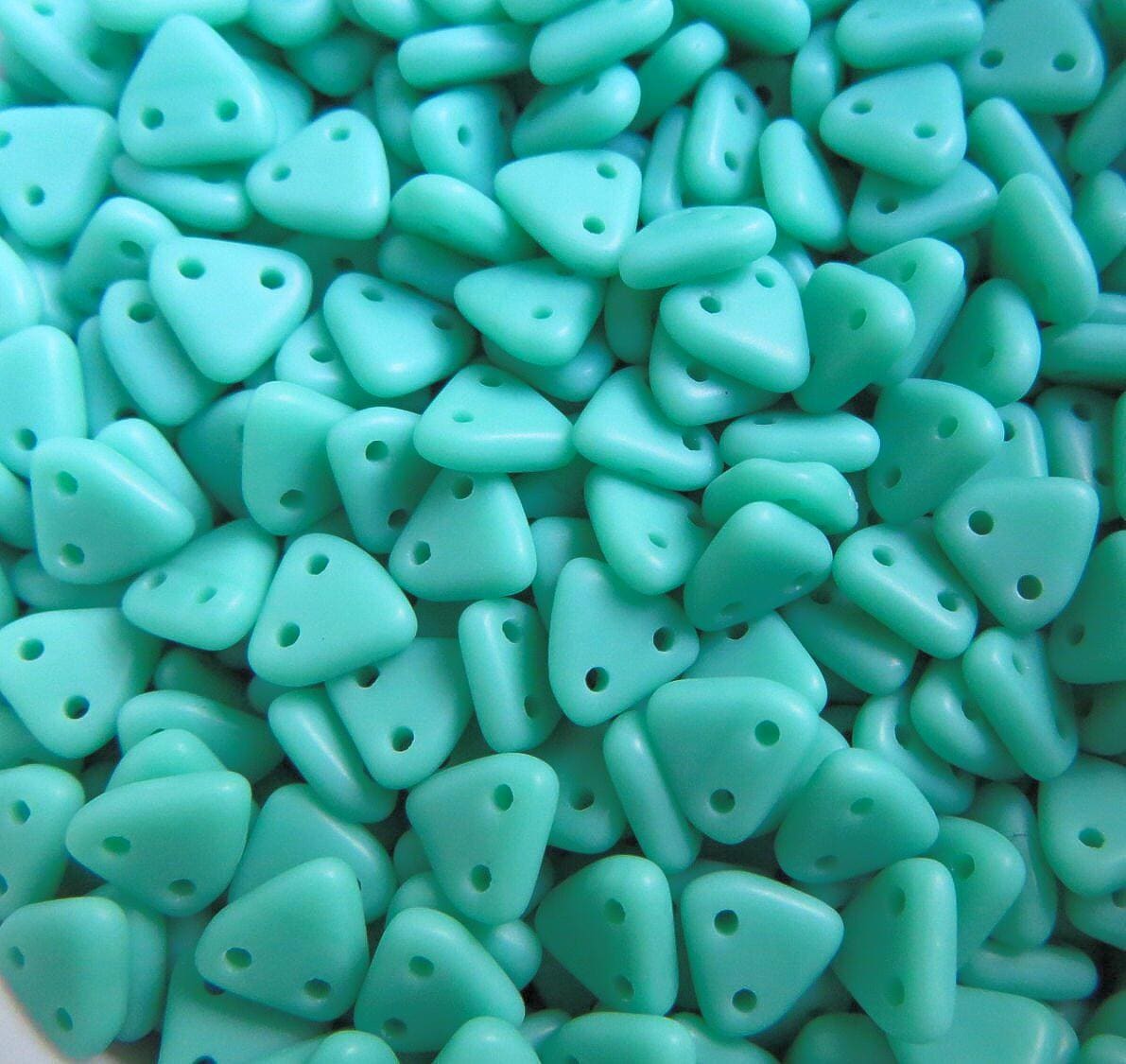 CzechMates™ Triangles are flat beads with two face holes, ideal for adding dimension to jewelry. Each triangle measures 6x6x2mm with precise .85mm holes. They are available in various Czech colors and finishes.