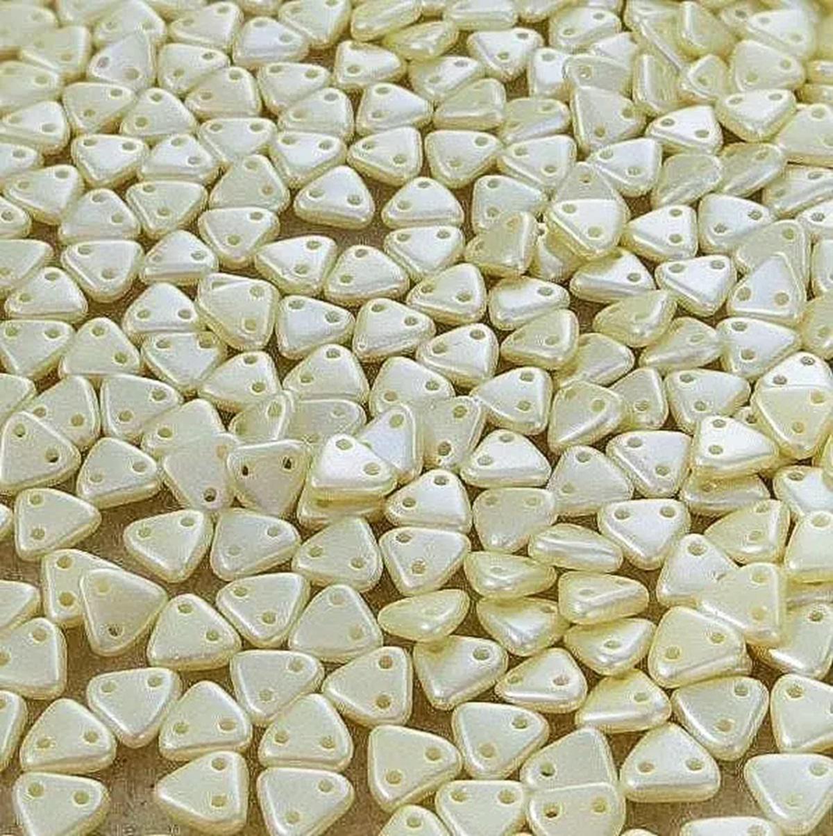 CzechMates™ Triangles are flat beads with two face holes, ideal for adding dimension to jewelry. Each triangle measures 6x6x2mm with precise .85mm holes. They are available in various Czech colors and finishes.
