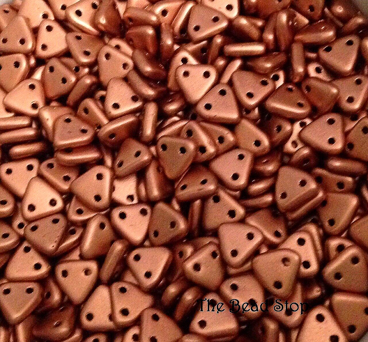 CzechMates™ Triangles are flat beads with two face holes, ideal for adding dimension to jewelry. Each triangle measures 6x6x2mm with precise .85mm holes. They are available in various Czech colors and finishes.