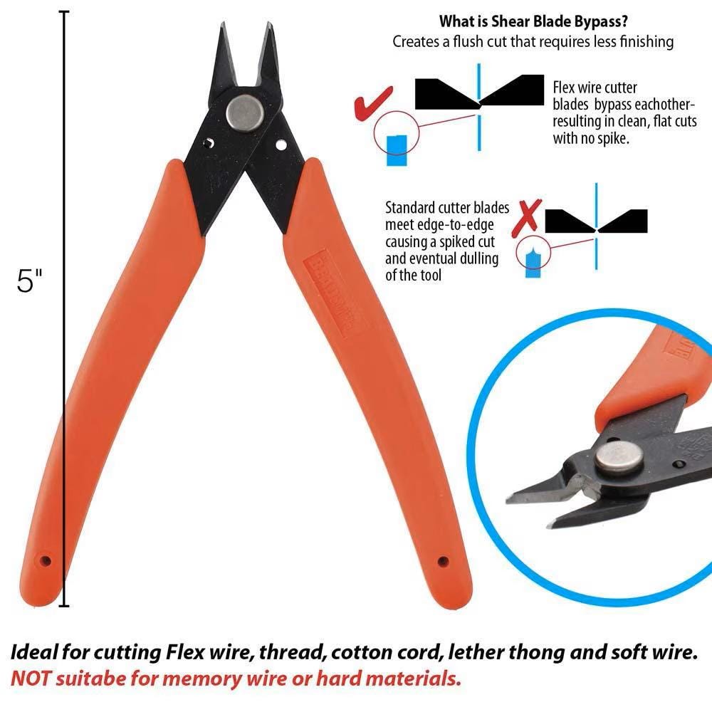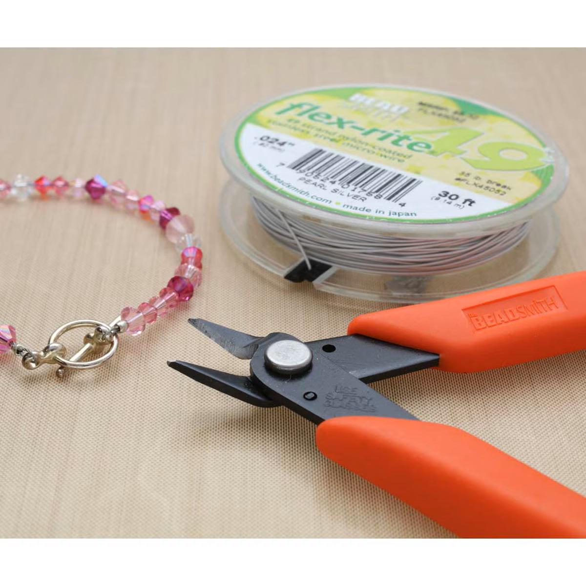 The Beadsmith Flush Cutter offers accurate flush cuts on multi-strand flex-wire. Made of high-grade carbon steel with sharp edges, it features ergonomic, soft-coated handles and a return spring grip to reduce hand fatigue and give precise control during repetitive work.