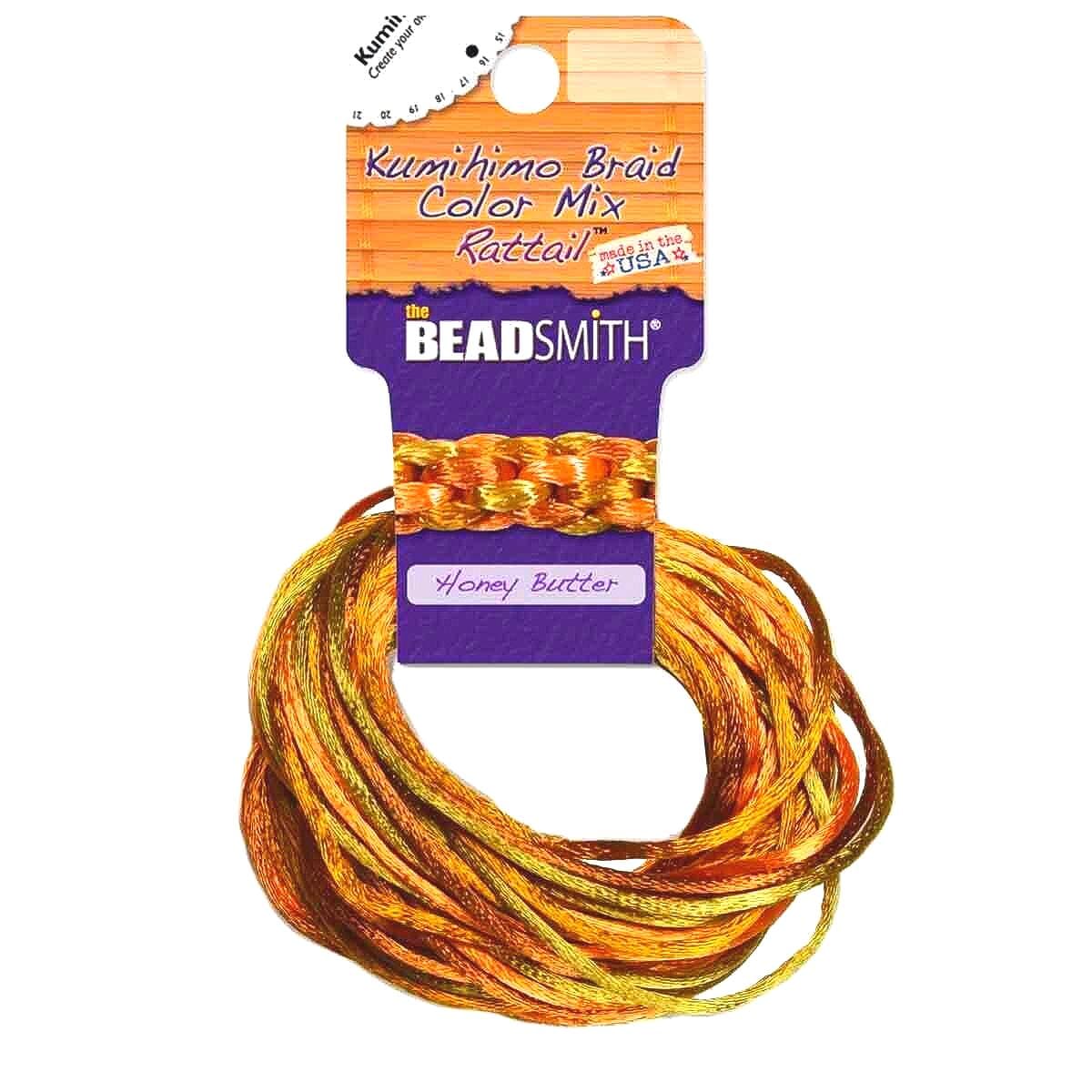 The Beadsmith Rattail cord is a versatile satin-look nylon cord with a cotton core and rayon outer layer, offering a silky look in vivid colors. Soft yet sturdy, it's easy to cut and suitable for jewelry making, crafts, braiding, home décor, clothing trim, and more. It fits most large-hole beads (minimum 2mm diameter) and is commonly used in Kumihimo (Japanese braiding).