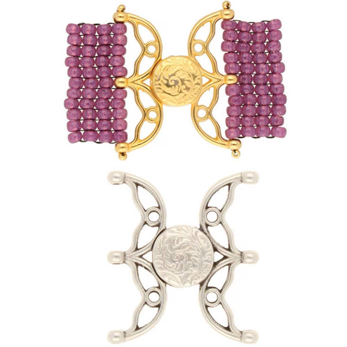 Cymbal Metal Fashion Elements are a unique line of metal components for beadwork, designed to fit popular beads like Czech GemDuo, SuperDuo, Silky Bead, Honeycomb Bead, Miyuki Tilas, various seed beads, and shaped beads such as Paisley Duo, Ginko, Kite Bead, and Chevron Duo.