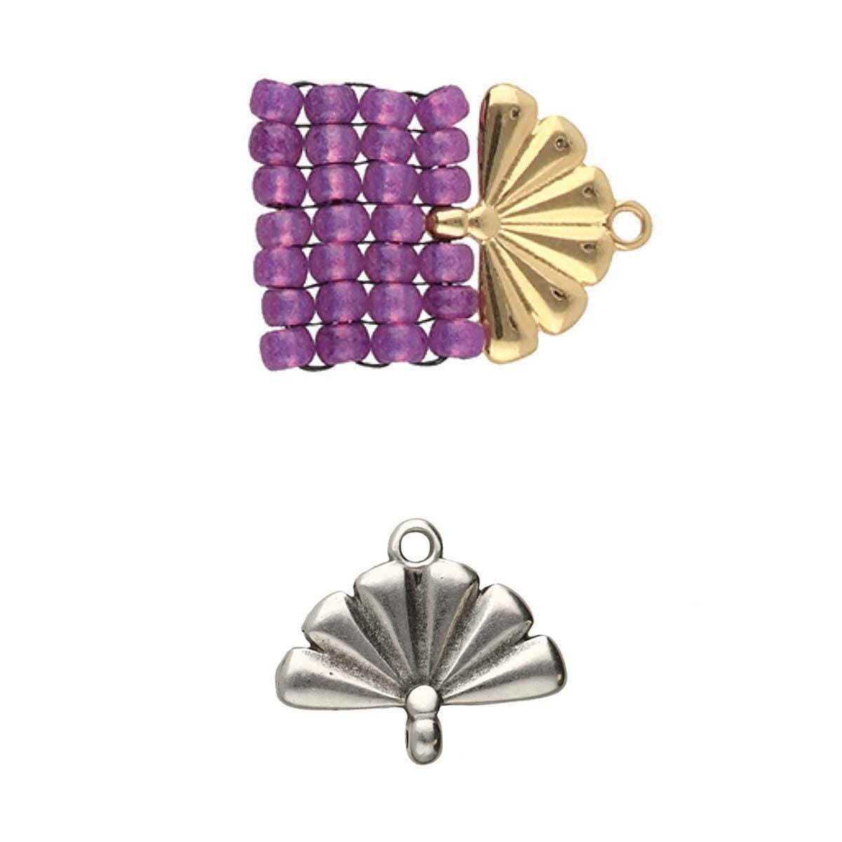 Cymbal Metal Fashion Elements are a unique line of metal components for beadwork, designed to fit popular beads like Czech GemDuo, SuperDuo, Silky Bead, Honeycomb Bead, Miyuki Tilas, various seed beads, and shaped beads such as Paisley Duo, Ginko, Kite Bead, and Chevron Duo.