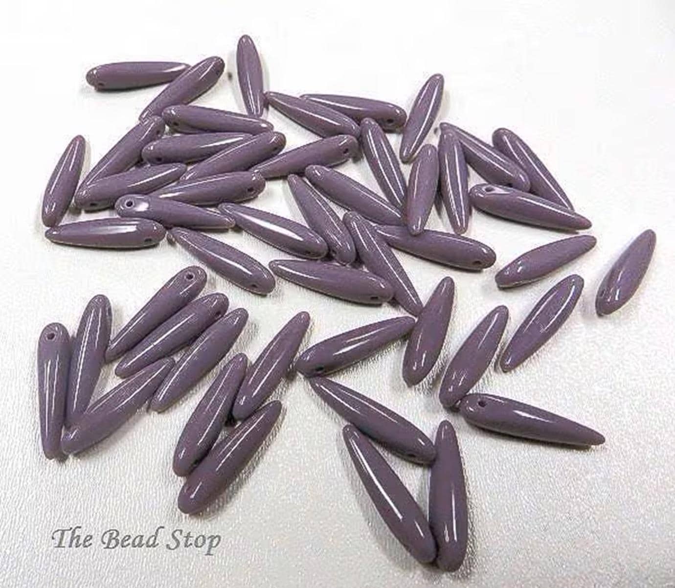 The Preciosa Thorn™ bead is an elongated slim dagger-like Czech glass bead that looks like a thorn. These are a pretty opaque Violet color which will lend a classic edge to your designs. Perfect for drop earrings and statement necklace designs.