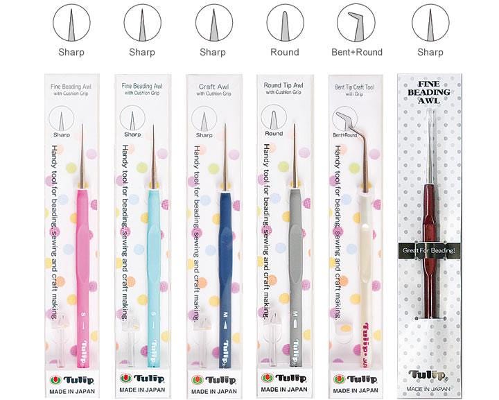 These Tulip Awls are cushion gripped and easy to hold. Tulip products are known durability and strength that we have ever used. Tulip beading needle points are specially designed to ease between beads and avoid splitting the thread.
