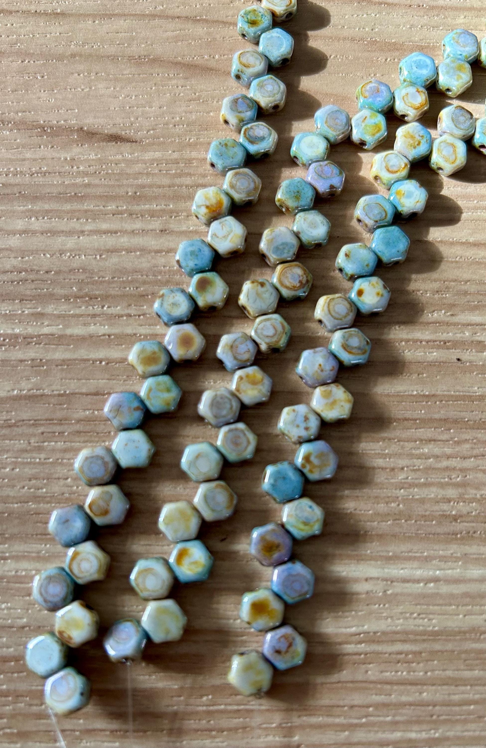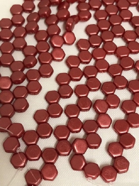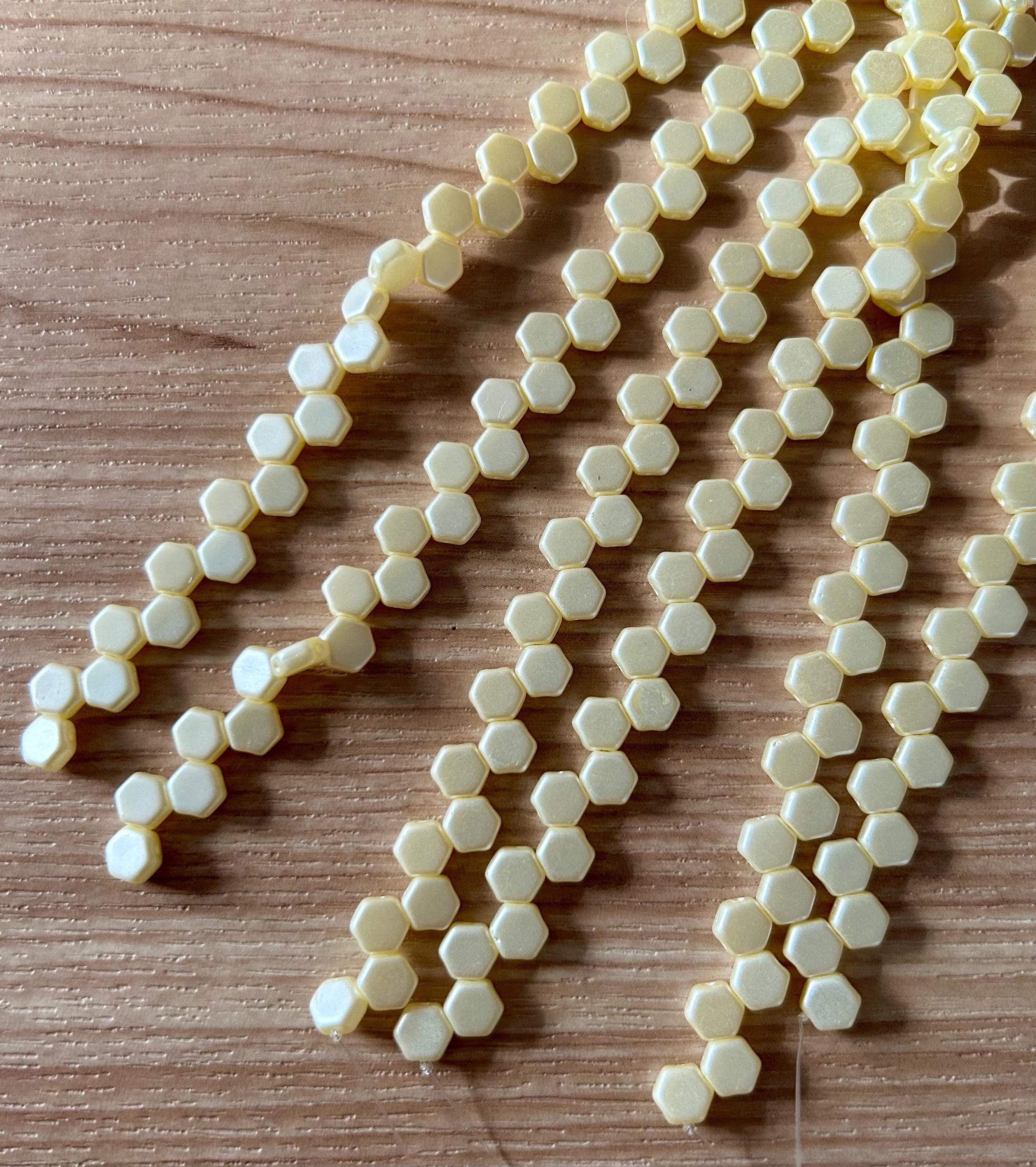 These versatile Honeycomb beads are six-sided hexagons with two side-drilled holes, ideal for bead weaving, stringing, leather wrap bracelets, accenting, or bead embroidery. Each strand contains 30 pre-strung beads.