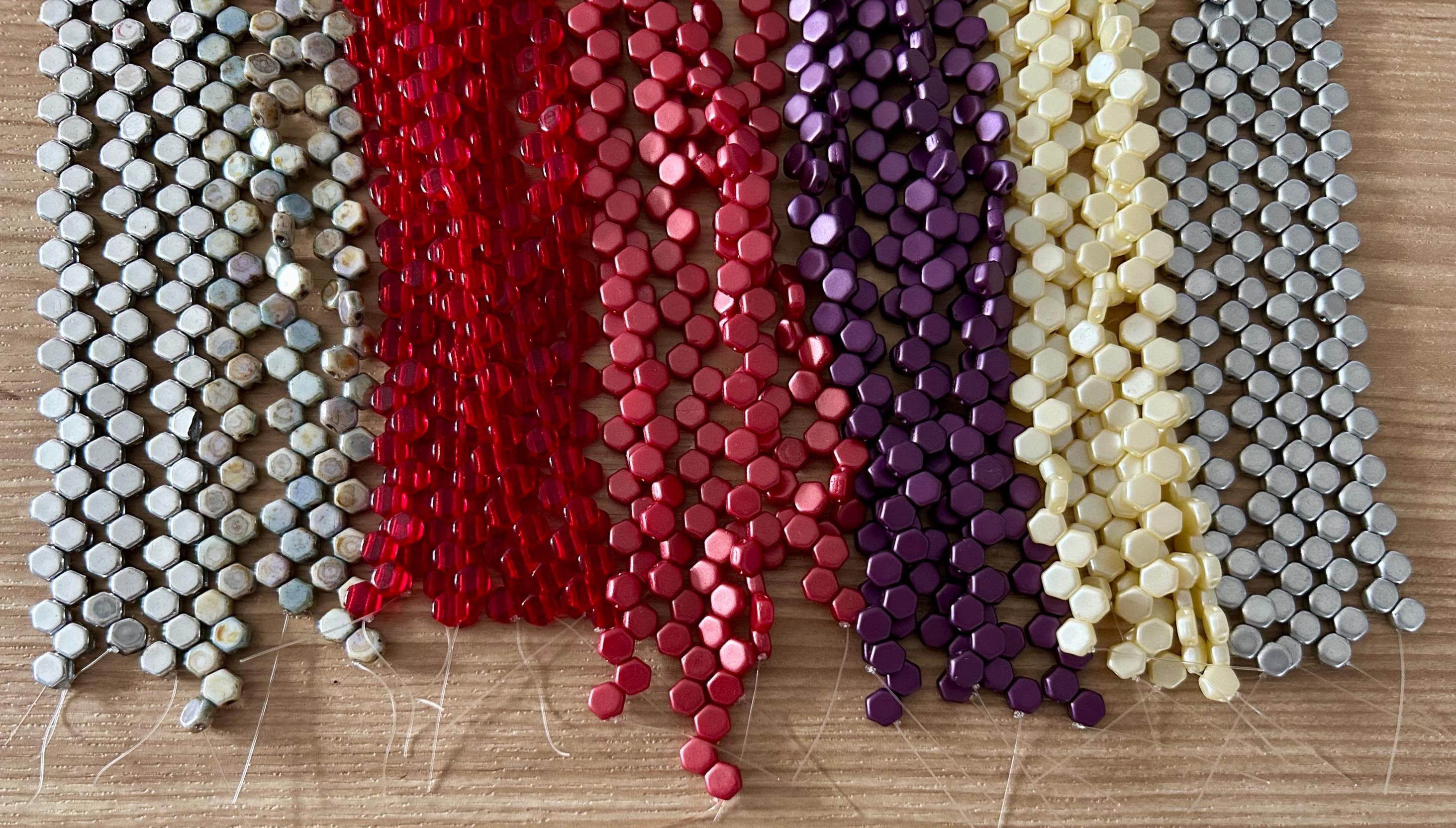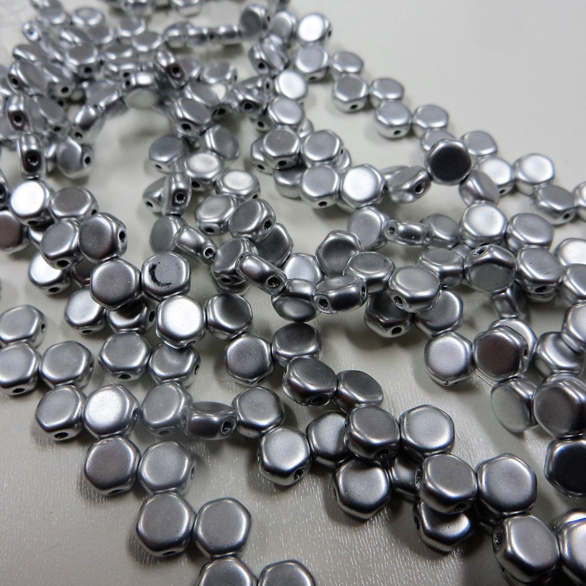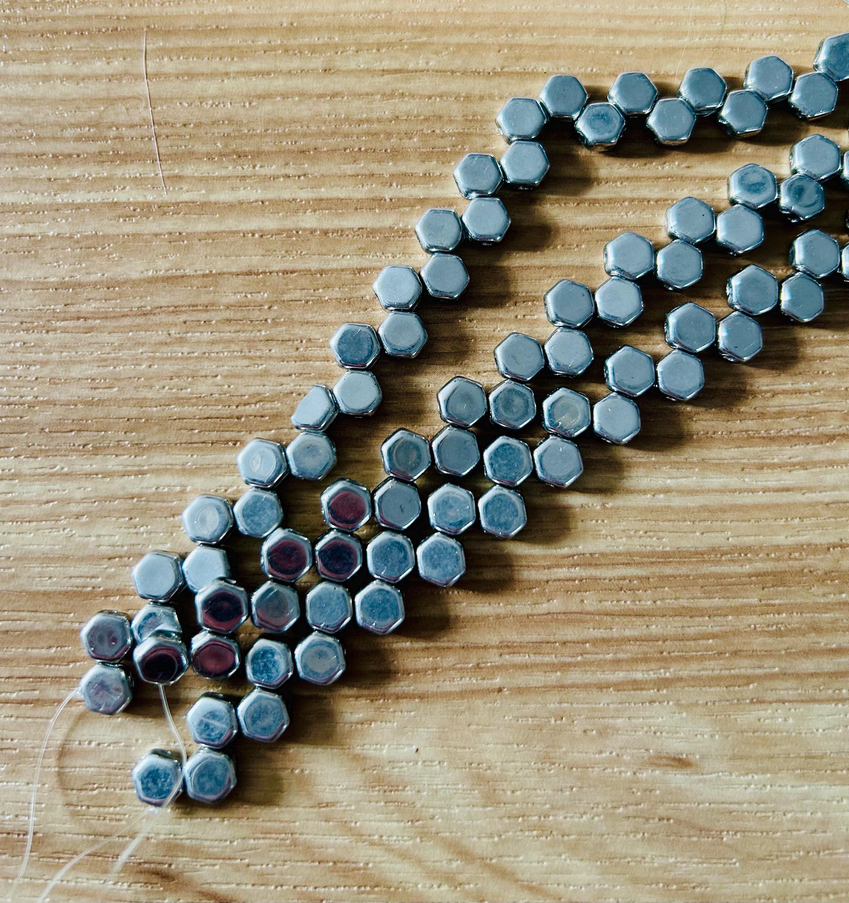 These versatile Honeycomb beads are six-sided hexagons with two side-drilled holes, ideal for bead weaving, stringing, leather wrap bracelets, accenting, or bead embroidery. Each strand contains 30 pre-strung beads.