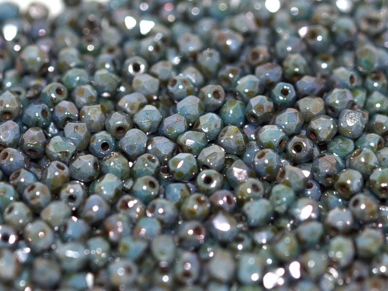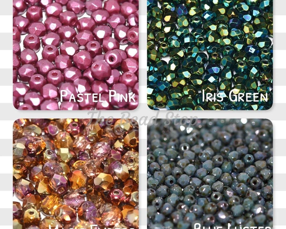 Medium: Czech Glass, faceted cut round bead - Various finishes/coatings per description of each bead color