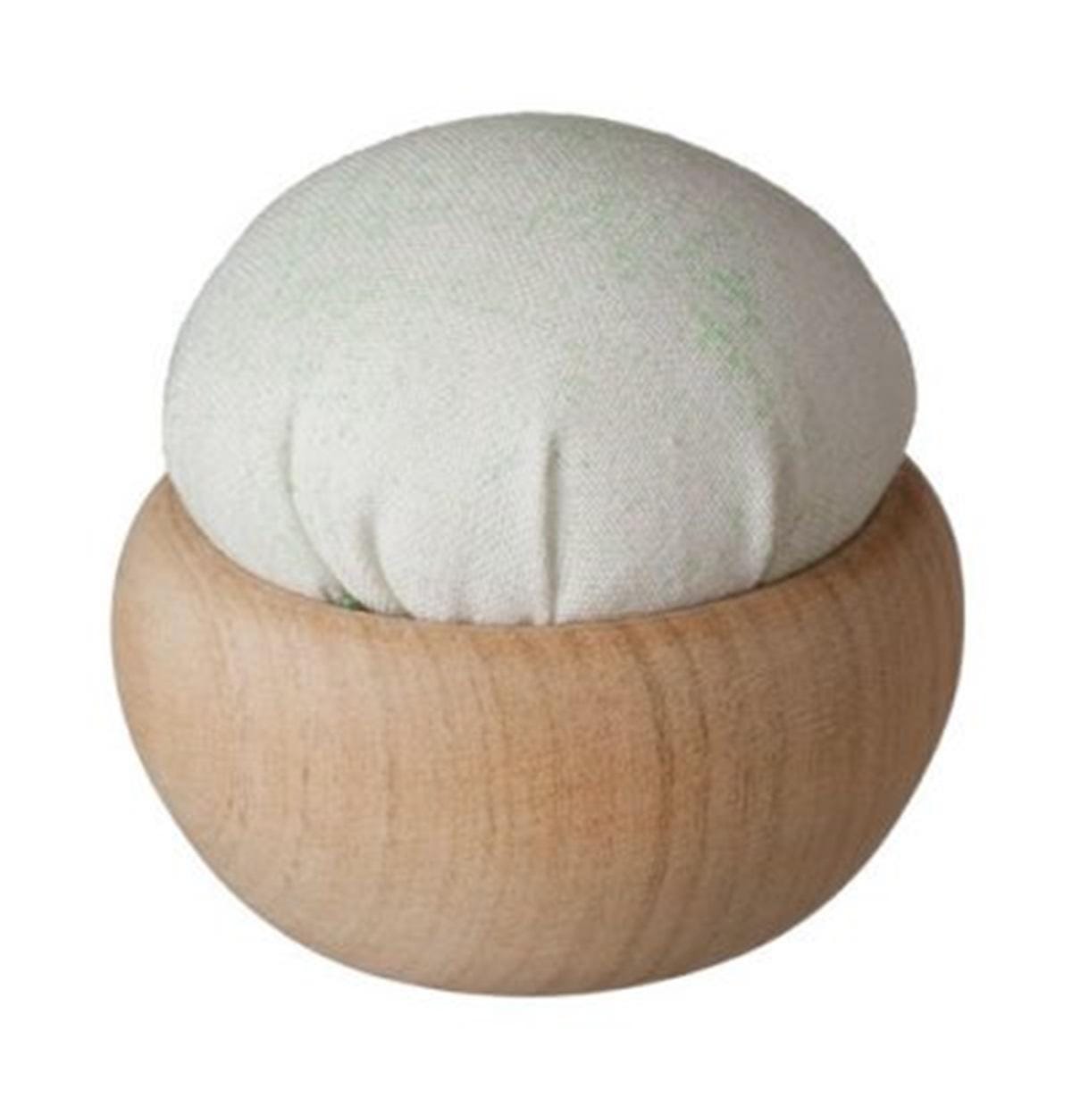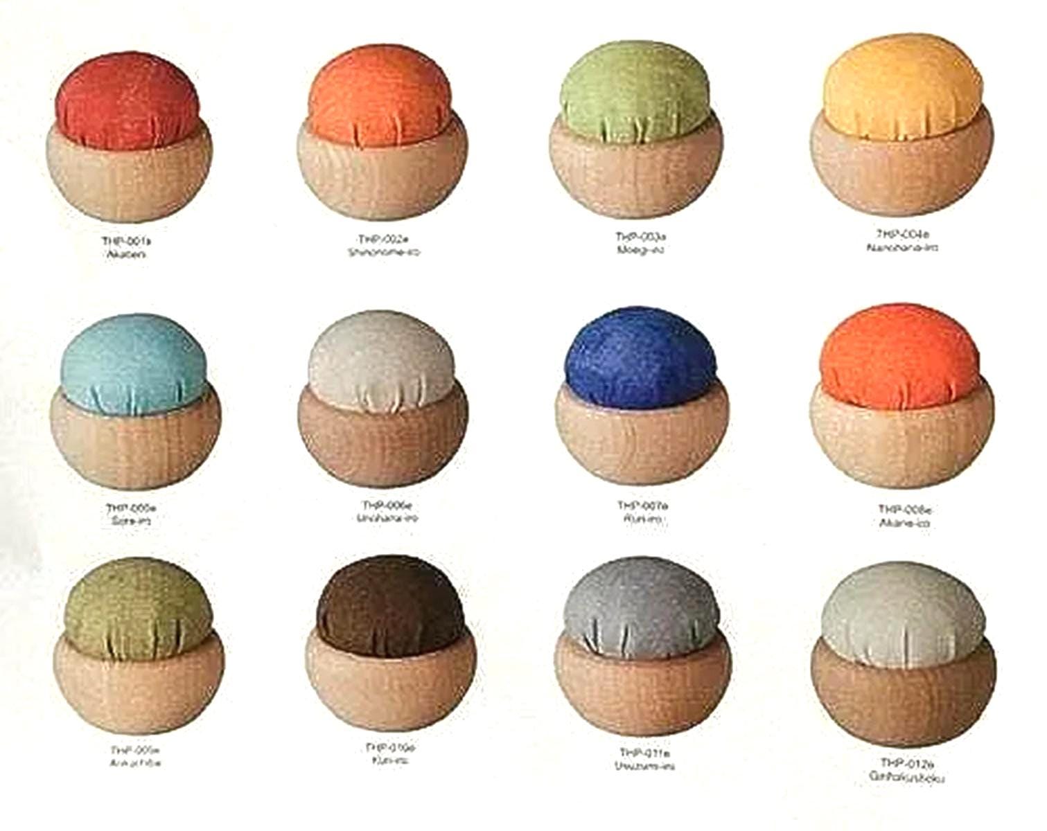 Our preferred needle supplier offers Cherry Wood Pincushions. The cherry wood base is smooth, sturdy, and comfortable, while the Japanese cotton top is available in 12 colors for each month. Special padding helps prevent needle rust.